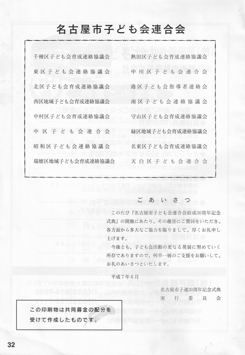 30周年記念誌 市子連のあゆみ
